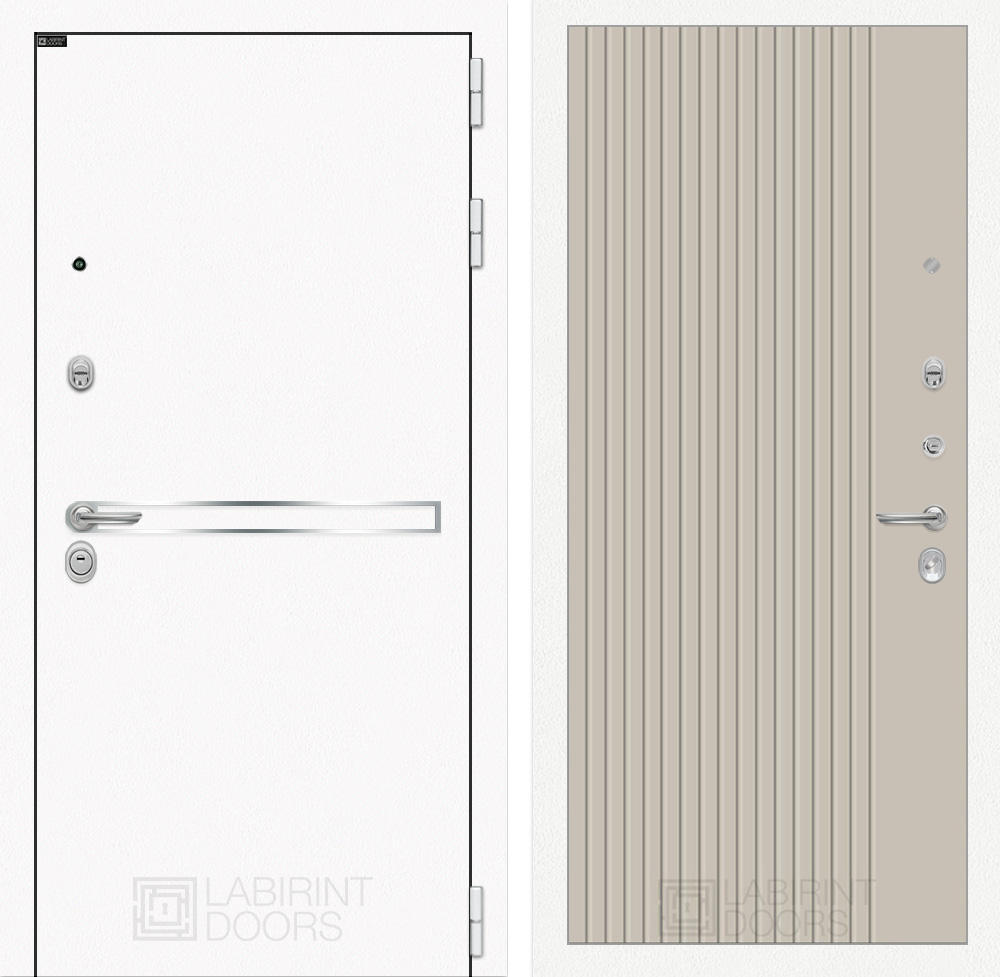 Металл с покрытием "Шагрень" белая, зеркальная вставка из нержавеющей стали